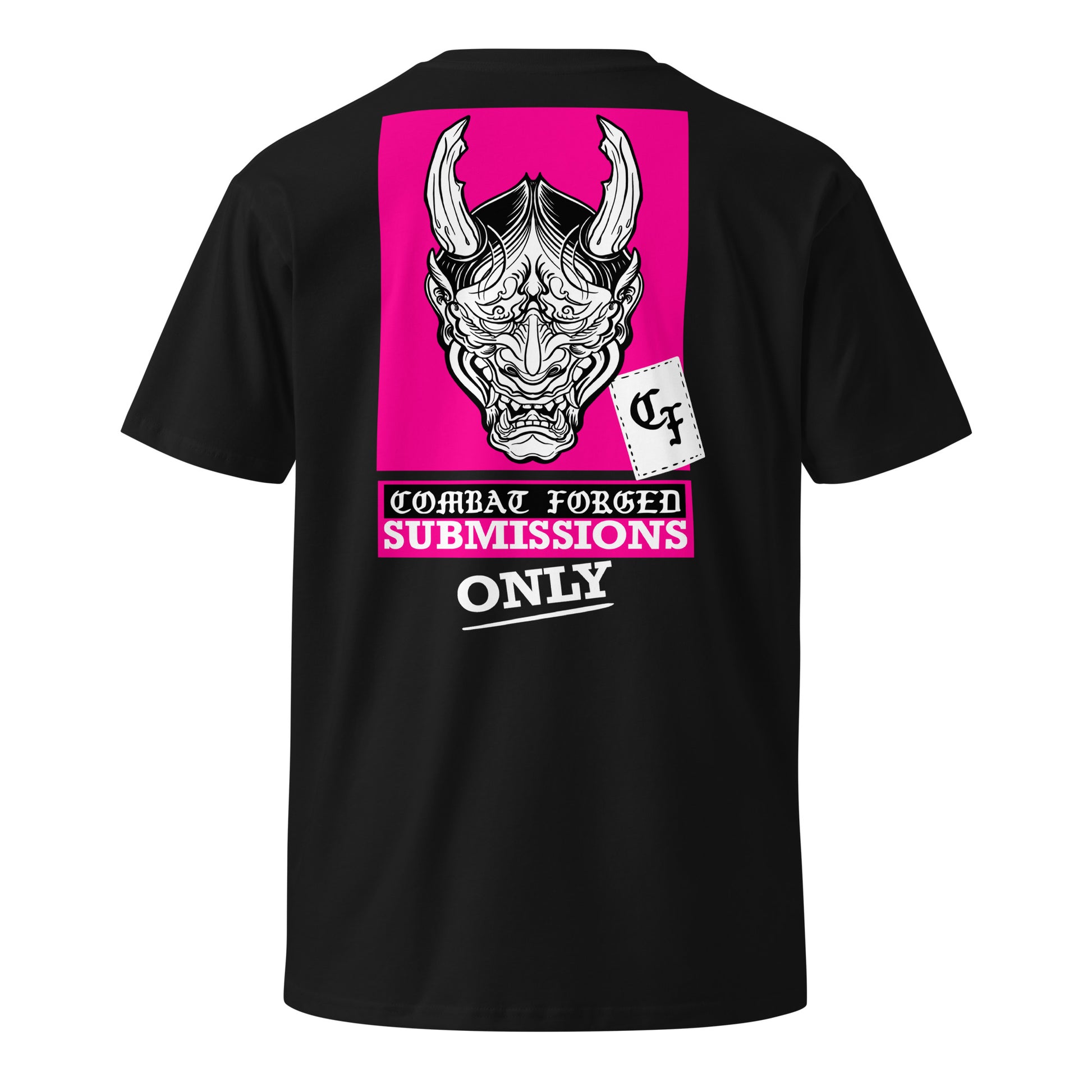 The back print hits hard with our “Submissions Only” motto, while the CF signature card marks you as part of the forged few.